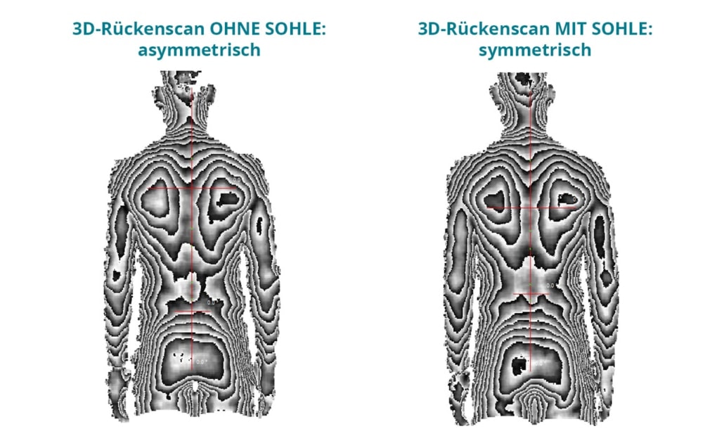 Durch bewegte Lichtstrahlen wird dein Rücken vermessen und die Daten ausgewertet. Dieser Rückenscan passiert berührungslos und völlig strahlenfrei und ist somit auch für Schwangere oder Kinder bestens geeignet. Diese und weitere Messdaten dienen als Basis für die Konstruktion deiner Aktivsohlen.
